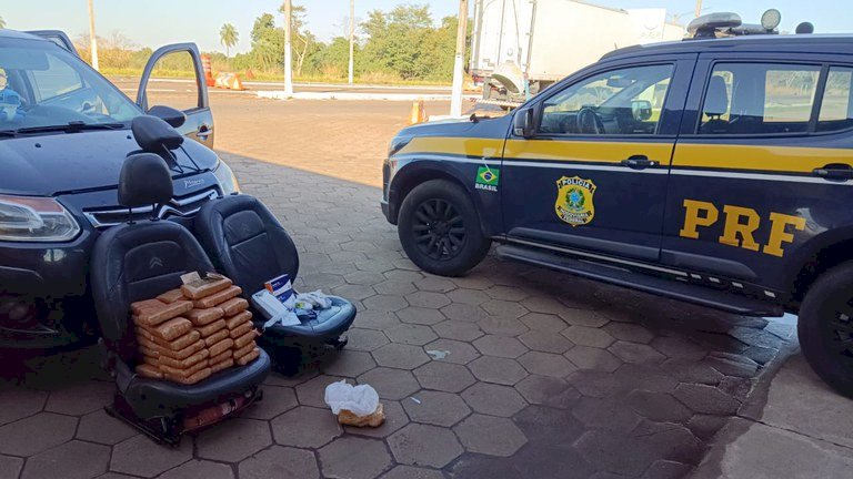 A droga era transportada em um Citroen/C3, na BR-267. Durante abordagem, a condutora demonstrou nervosismo. As drogas e duas caixas de medicamentos para emagrecimento estavam escondidas sob os bancos do veículo.