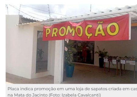 A placa de “promoção', presa no portão de uma casa na Mata do Jacinto, mostra que ali há um comércio. É a residência de Dilma Quinhone, de 60 anos, que, há quatro anos, decidiu transformar a varanda e a sala em uma loja de calçados. A mudança foi uma questão de sobrevivência.