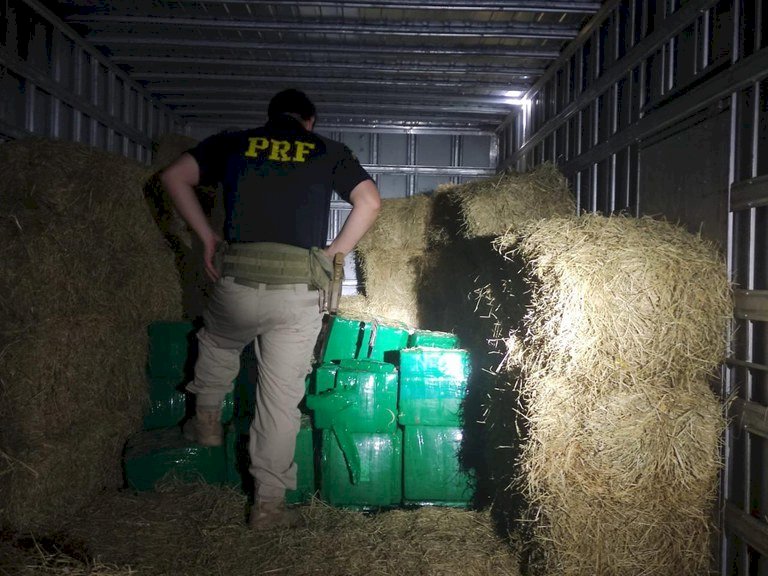 PRF apreende 2,3 toneladas de maconha escondidas em carga de feno