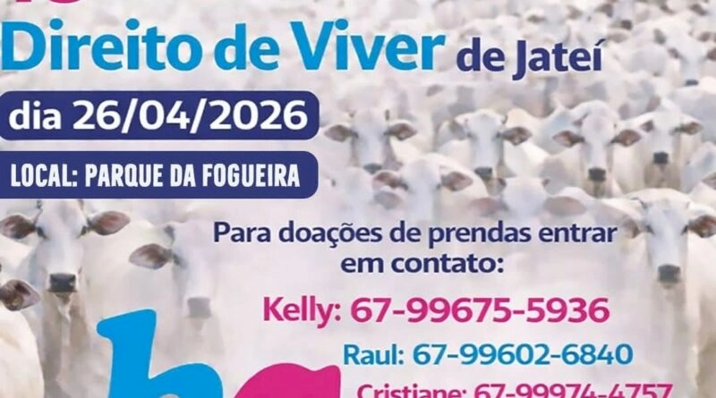 O município de Jateí está mobilizado para realizar um de seus principais eventos beneficentes , que é o “Leilão Direito de Viver”, em favor da manutenção do Hospital de Amor (Barretos), referência no tratamento e prevenção do câncer no Brasil e na América Latina. O evento acontece neste domingo, dia 26 abril, a partir das 11h no Parque da Fogueira.